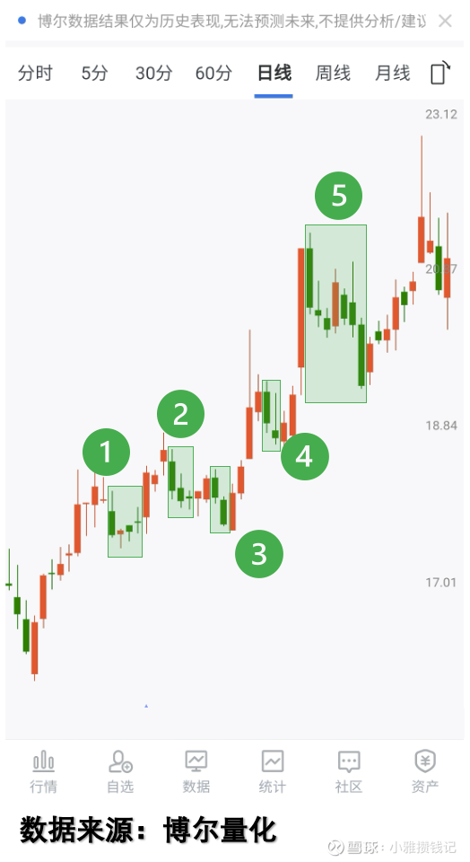 图中区域①到④的每次下跌都伴随着蓝色"回补主导动能",而橙色"机构库存"始终活跃。这意味着每次回调都是机构在暗中吸筹。可惜大多数散户被波动吓破了胆,在区域⑤真正的主升浪启动前就黯然离场。