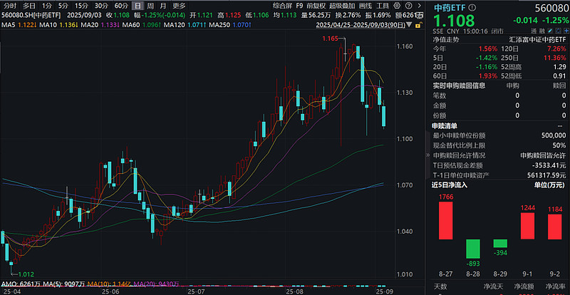 【中药连续回调“吸金”!中药ETF(560080)收跌1.25%,近2日净流入超2300万元!机构:业绩短期承压,静待需求回暖】