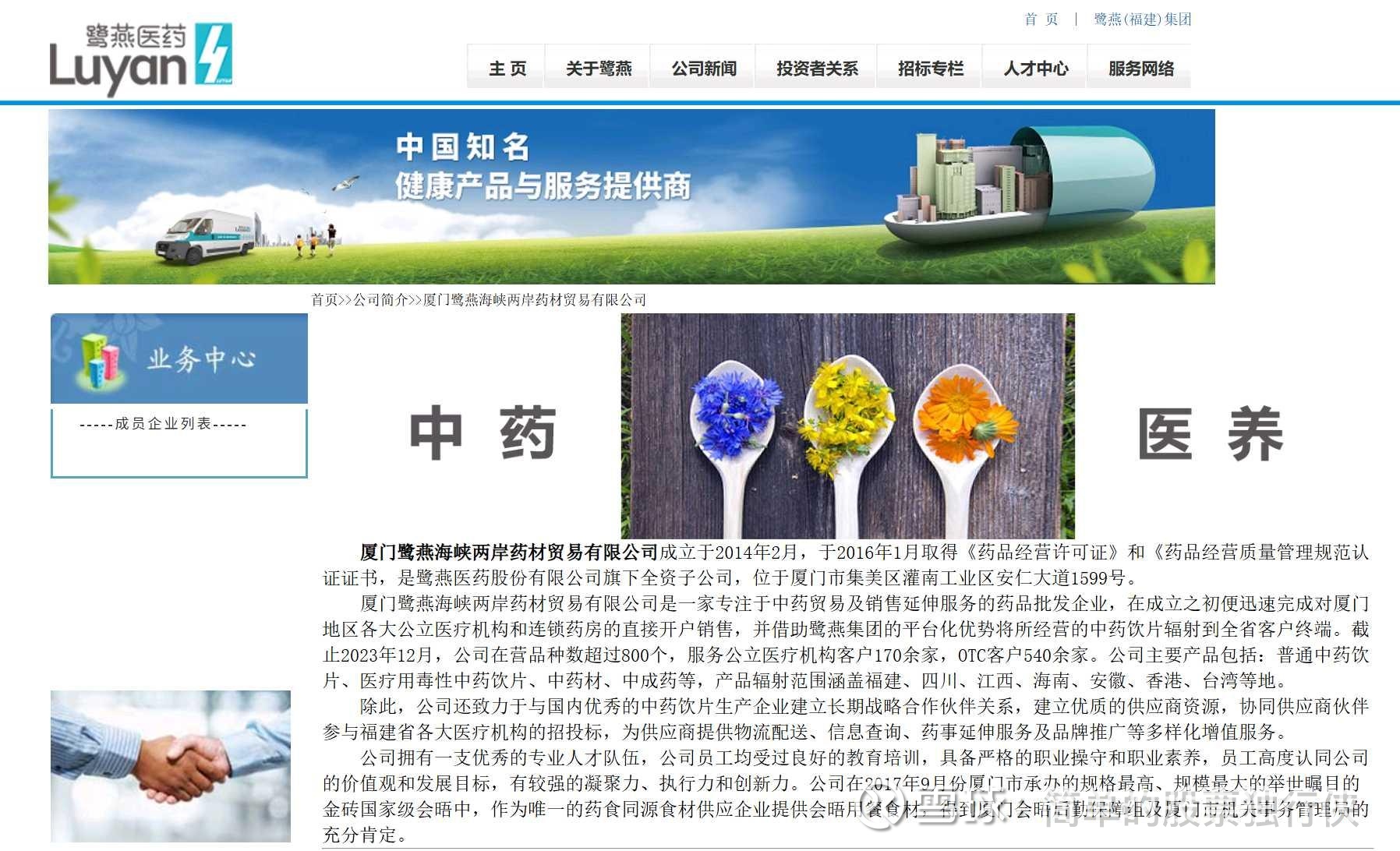1. 从物理通道到标准桥梁:公司成立之初即迅速完成对厦门地区主流医疗机构的覆盖,并将业务辐射至福建、四川、江西、海南、安徽乃至香港、台湾。这不仅是一条商品流通通道,更是在两岸医药标准共通、社保互通等政策趋势下,率先建立的 “信任与数据通道” 。其曾作为唯一药食同源食材供应商服务金砖国家会晤的经历,更是其产品品质与供应链可靠性的国家级背书。