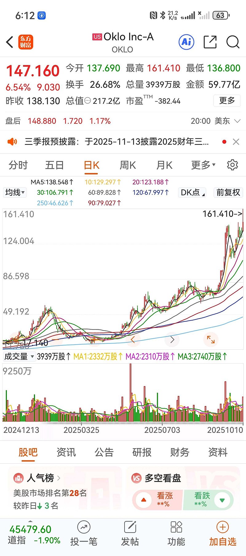 昨晚美股大跌,而美股核聚变股OKLO继续大涨创历史新高。