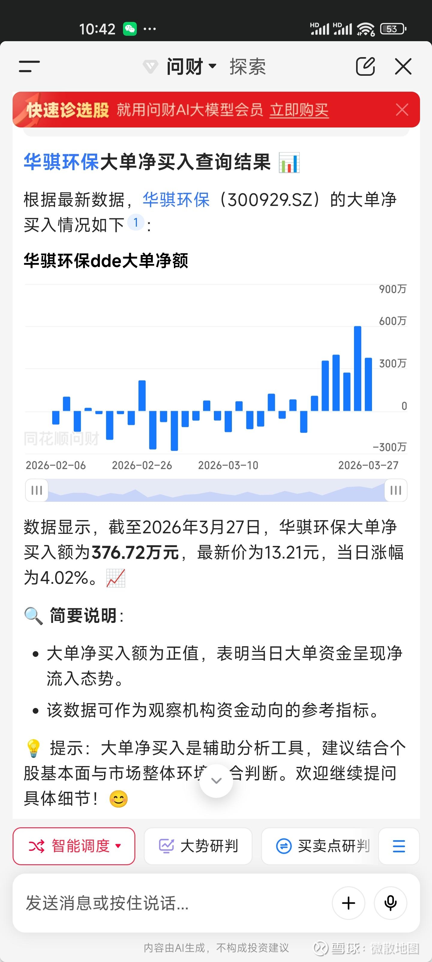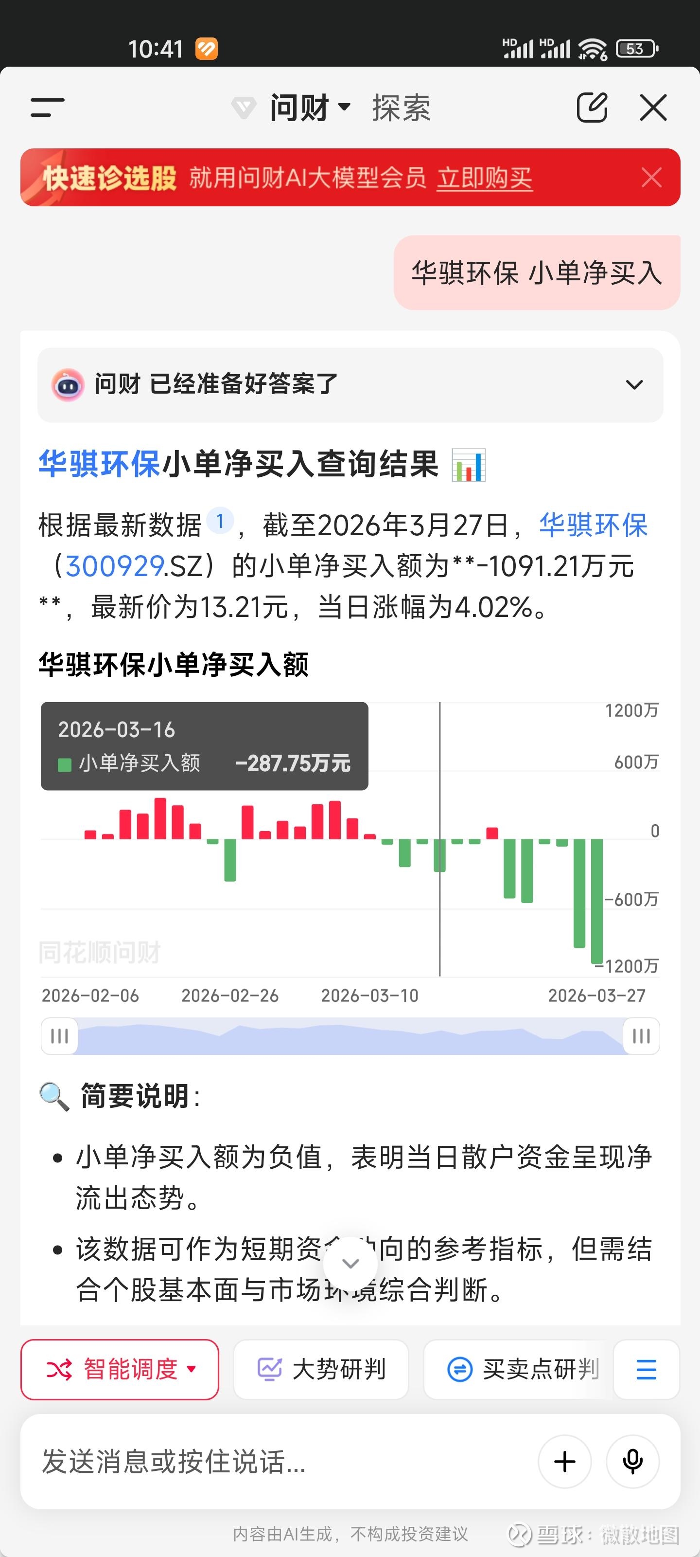 今天在交易软件上意外发现,华骐环保今天的小单净流入为-1091.21万元,大单净流入为376.72万元。简单来说是,小散卖出,大户买入。