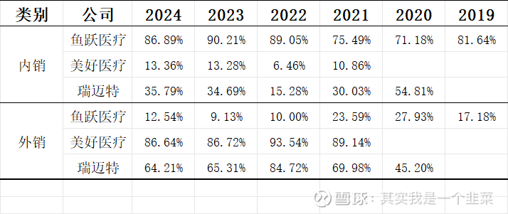 这周看$鱼跃医疗(SZ002223)$ 、$美好医疗(SZ301363)$ 、$瑞迈特(SZ301367)$ 的内外销对比。才发现,原来这3家公司是完全不一样的销售策略:
