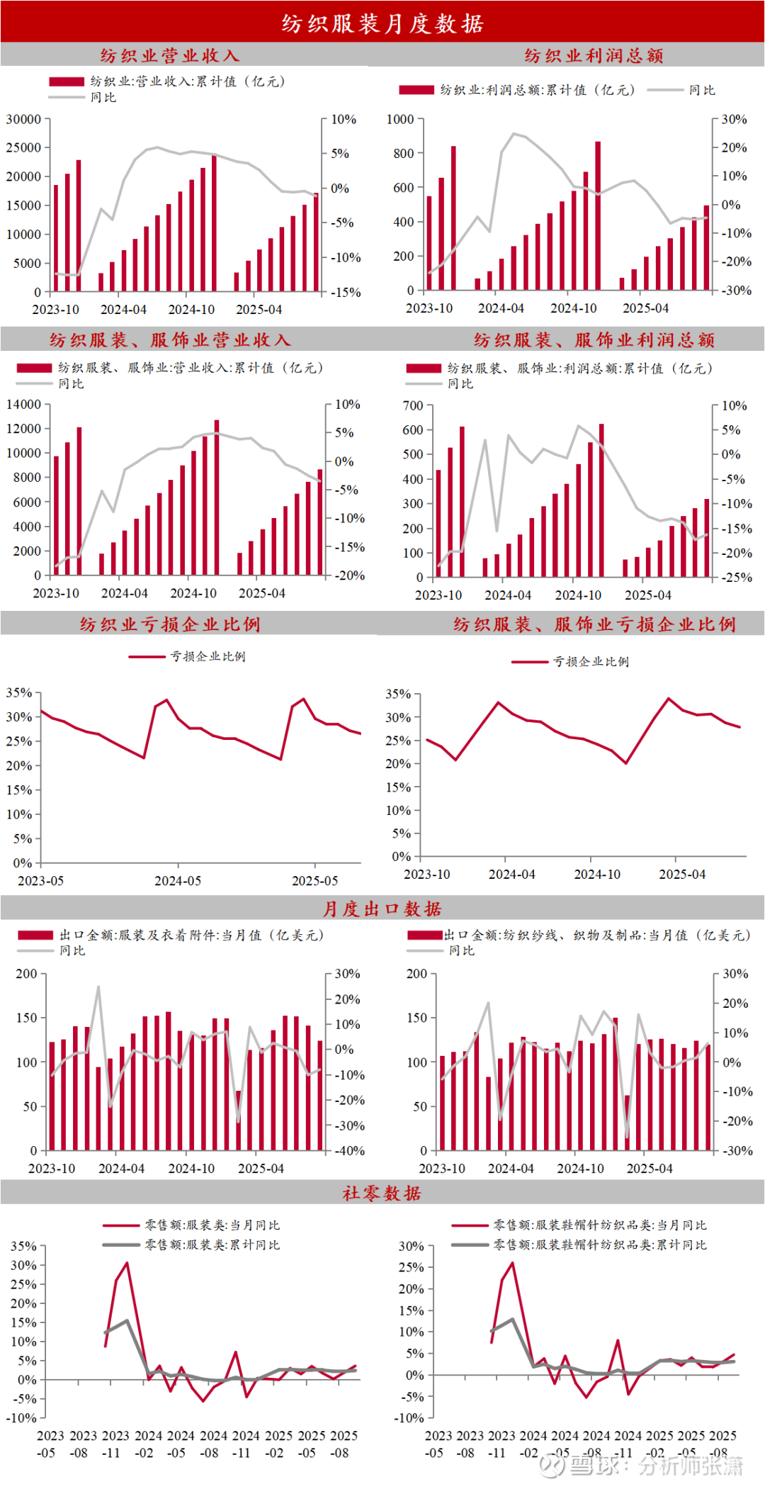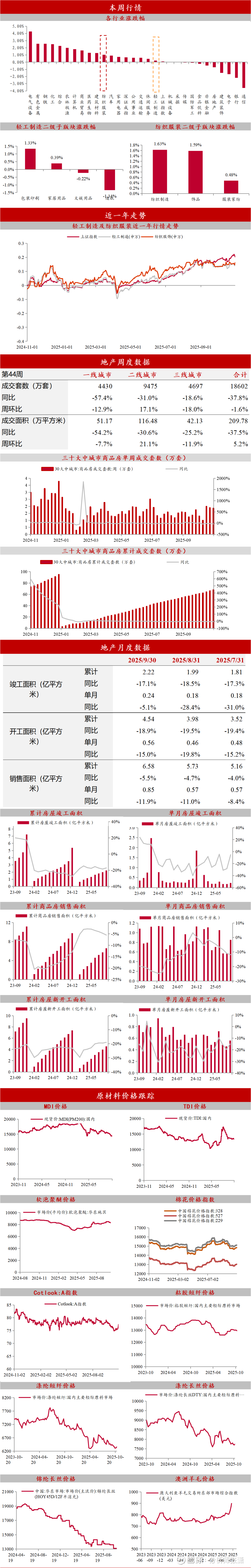 2025/10/27-2025/10/31上证指数0.11%,深证成指0.67%,轻工制造指数0.23%,在28个申万行业中排名第17;纺织服装指数1.03%,在28个申万行业中排名第11。轻工制造指数细分行业涨跌幅分别为:包装印刷(1.33%),家居用品(0.39%),文娱用品(-0.22%),造纸(-1.34%)。纺织服装指数细分行业涨跌幅分别为:纺织制造(1.63%),饰品(1.59%),服装家纺(0.48%)。