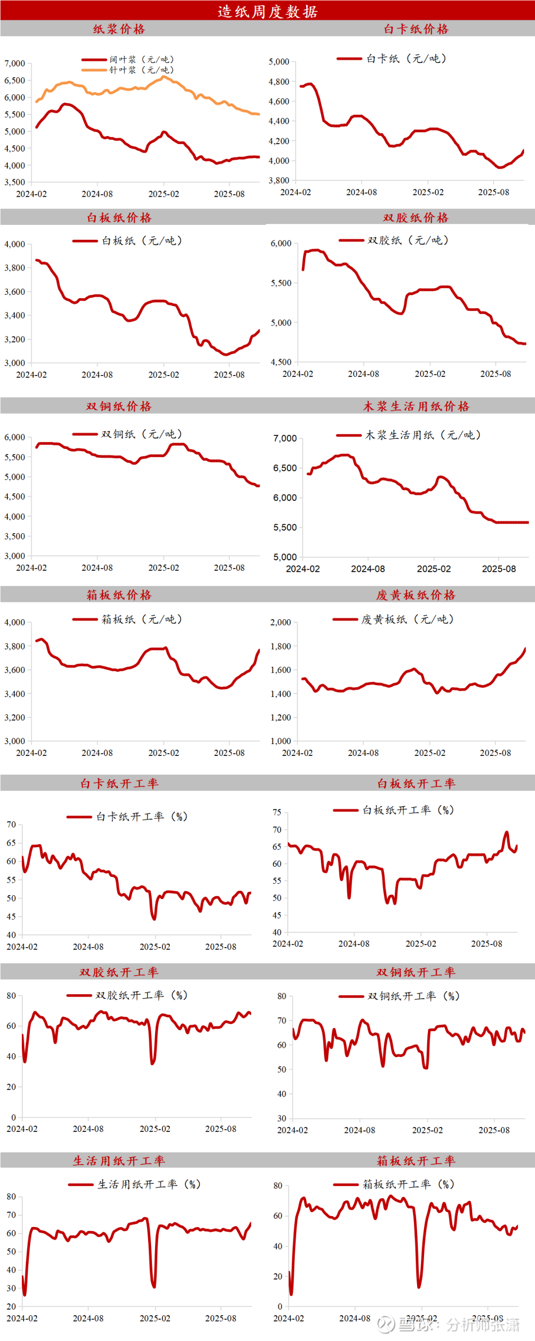 反内卷建议关注造纸行业机会。太阳纸业披露三季报,Q3文化纸延续探底,关注Q4新产能集中释放。太阳25Q3实现营业收入98.23亿元,同比-6.01%,环比+6.6%,归母净利润7.20亿元,同比+2.68%,环比-19.5%,扣非净利润7.07亿元,同比-8.61%,环比-19.7%。我们认为:持续推荐文化纸林浆纸一体化优势持续扩大的【太阳纸业】,考虑纸浆价格企稳回升及后续产能的释放,Q4旺季盈利有望改善;关注细分赛道景气度较高的【仙鹤股份】;新增产能较多导致纸价处于底部的白卡纸品种【博汇纸业】、【五洲特纸】;需求偏弱及进口纸压力较大的箱板纸品种【山鹰国际】、【玖龙纸业】、【理文造纸】等;同时建议关注业绩困境反转的【中顺洁柔】。