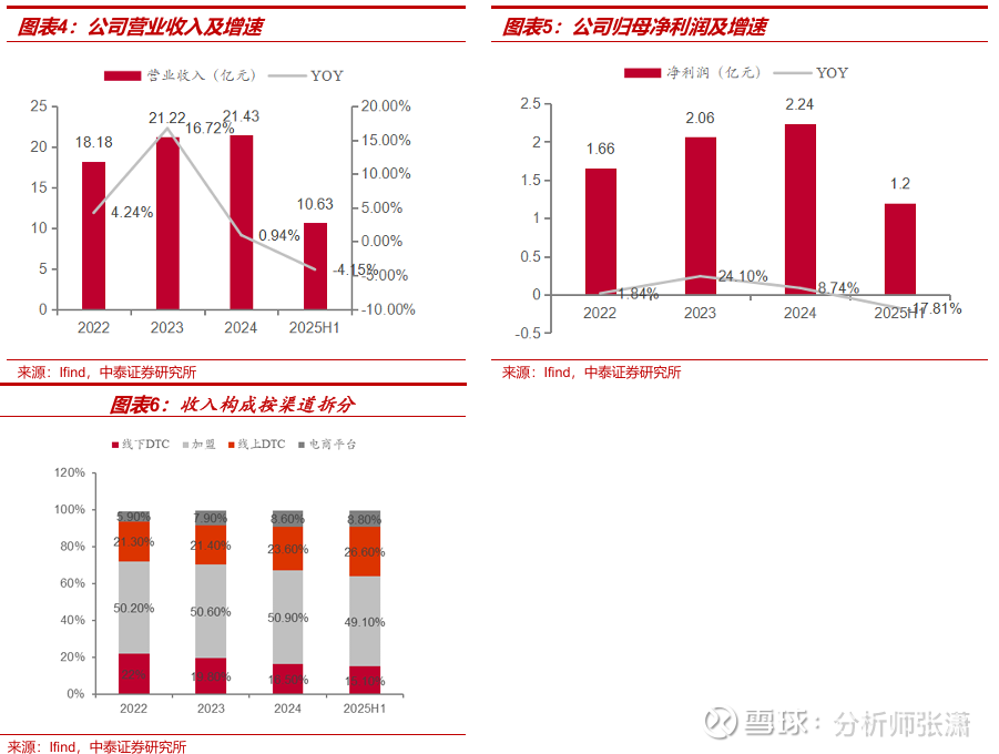 线上:线上渠道收入增速放缓,25年以前保持两位数增长,25H1收入占比达到35.4%。覆盖所有主要电商平台,截至招股书发行日,全渠道粉丝达4090万,会员人数超2600万。目前公司正在推进全渠道的会员体系,融合全渠道服务。