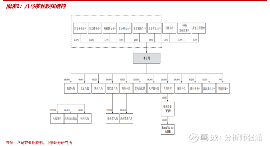 股权结构集中,品牌历史底蕴丰厚,始于三百年家族传承。创始人及董事长王文礼先生来自于三百年制茶世家,作为铁观音十三代传人,于2009年被授予国家级非物质文化遗产项目乌龙茶制作技艺(铁观音)代表性传承人称号。王文彬先生、王文礼先生、陈雅静女士、吴小宁女士、王文超先生及王小萍女士构成一致行动集团及控股股东(IPO后持股49.98%)。本次IPO发售900万H股,发售价为50港元,募资约为4.5亿港元。