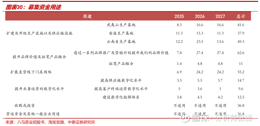 八马茶业此次全球发售所得款项净额约为3.68亿港元,将主要用于扩建生产基地(占35%)、提升品牌价值及扩大产品组合(占20%)以及扩展直营线下门店网络(占15%)。未来,八马在保持传统高端市场优势的基础下,将开发更丰富的产品品类,向更年轻、更大众的市场进行拓展,以适应整体茶叶行业消费需求的变化。