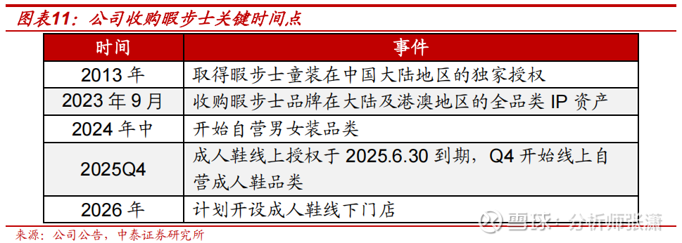 2023年至今收购暇步士拓品类:2023年公司成功收购暇步士品牌阿鲁及港澳地区全品类IP资产,2024年开始自营暇步士成人装(男女装)及玩具周边业务,2025年开始自营暇步士鞋类业务。
