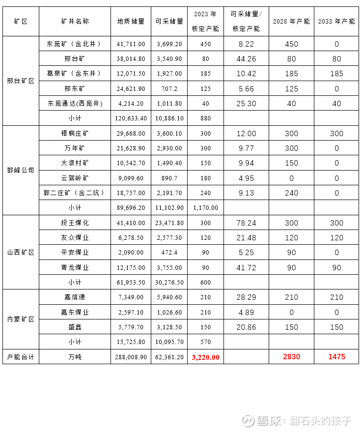 其中,2座矿井可采年限小于5年,8座矿井可采年限小于10年,静态考虑矿山枯竭因素,2033年产能将自有1475万吨。