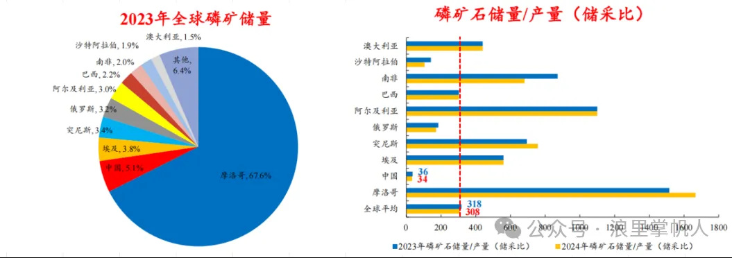 2024年我国磷矿石储采比(储量/产量)仅为34,远低于全球平均值308,过度开采问题突出。早在2016年底国家批复通过《全国矿产资源规划(2016-2020年)》,首次将磷矿列入战略性矿产目录。