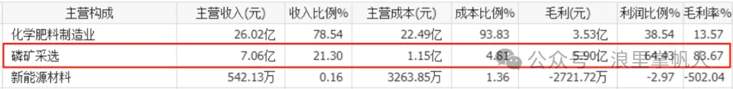 2024年成产磷矿石113.14万吨,销量73.10万吨,磷矿石营收7.06亿元,成本1.15亿元,毛利率83.67%,算下来售价965元/吨,成本157元/吨。