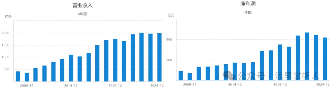 收入与利润:2024年港口行业收入1998.61亿,收入近4年都在2000亿左右,行业没有增长;净利润423.2亿,同比下滑6.6%,这算是行业进入成熟期的标志之一。