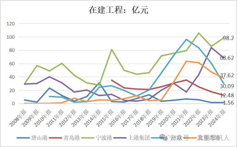 统计了港口板块的在建工程情况(数据来源:萝卜投研),其在建工程如下图所示。
