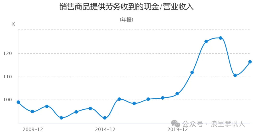 收现比与净现比:这两个指标主要是看收入和净利润的现金含量,大于1即现金含量高。2024年销售商品提供劳务收到的现金/营业收入的值为1.16(整合之前收现比小于1,即营业收入中现金含量低),经营现金流净额/净利润的值为1.21(前者称收现比,后者称净现比),行业现金流也很好。