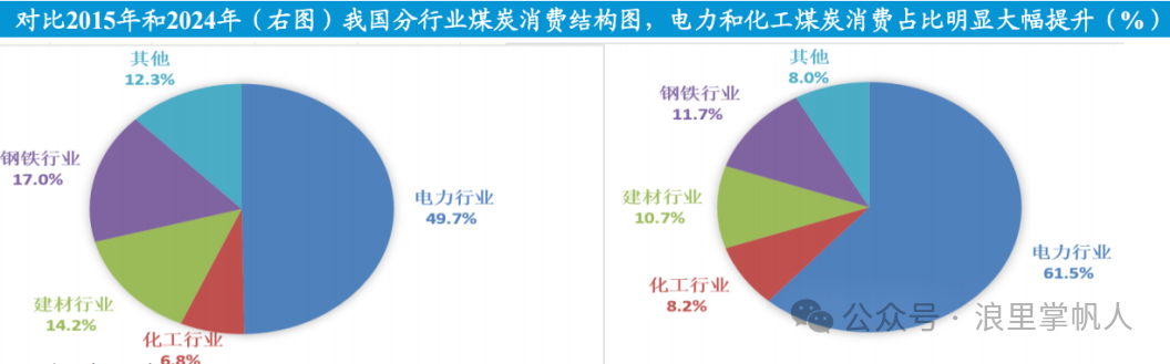 煤炭需求:2024年煤炭下游的需求结构:电力占61.5%、钢铁占11.7%、建材占10.7%、化工占8.2%,其他占8.0%,电力和化工用煤占比提升。前三季度归上火电发电量同比下降1.2%,生铁产量同比下降1.1%,水泥产量同比下降5.2%,妥妥的需求不足。