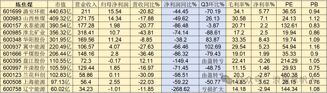 炼焦煤板块前三季度营业收入1754.79亿元,同比下降26%,营业成本1335.38亿元,同比下降23%,成本降速不及收入降速,说明焦煤行业的成本管控做的不是很好。