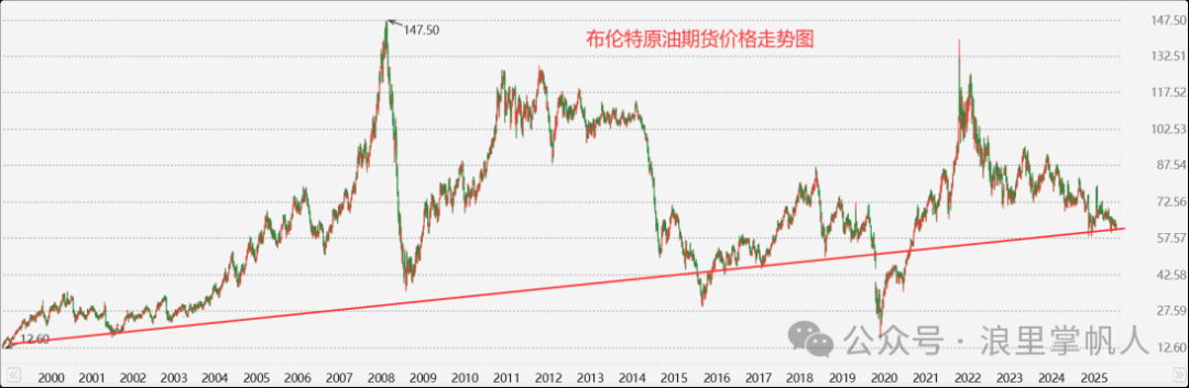 下图是布伦特原油二十年来的期货价格走势图,可以看出价格波动非常剧烈。曾经在2020年4月份,5月交割的期货合约跌成了负价格,这在历史上是没有出现过的。当时的情况是因YQ需求端急剧减少,在供应端,3月份OPEC +会议上俄罗斯与沙特未就进一步减产达成一致,随后大幅增产,供应过剩导致价格大跌;而过剩的原油迅速填满了储油库,进一步导致需要实物交割桶油的储存费用比油价还要高,5月需要交割的合约价值很低(现货交割即亏损),加之该合约非主力合约,成交量稀少,合约持有者直接在期货市场平仓,情绪推动油价大跌。