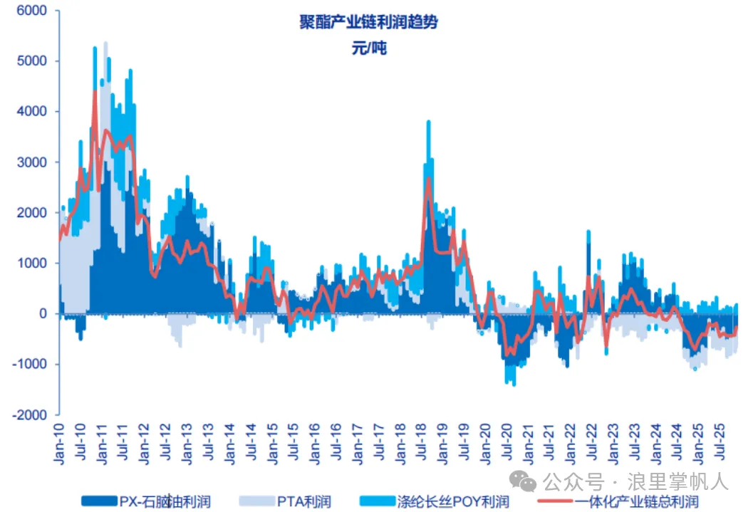 桐昆股份和新凤鸣的芳烃因更接近下游纺织链,美国服装去库后的补库,利润反弹;中游的恒力石化和荣盛石化利润平稳,PTA板块利润仍然处于低位;地产链的万华化学业绩就下滑明显。