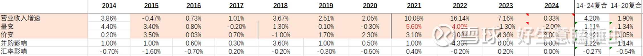 从报表的量价来看,公司在疫情前2014-2020年复合量增1.34%,价增1.05%。价增没有高于通胀,没有强提价权。
