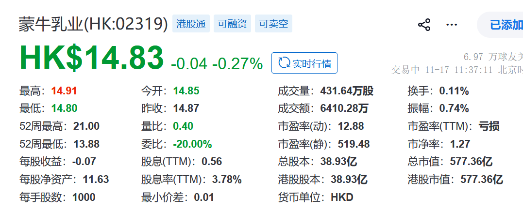 身为日常消费品的次龙头公司,蒙牛股价跌得不足1.3pb($伊利股份(SH600887)$ 3.2),这说明市场认为蒙牛正处在比较大的麻烦之中。