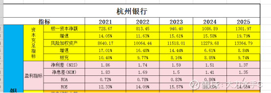 接下来我们看看杭州银行21-25年的风险指标中的资本充足和盈利指标。