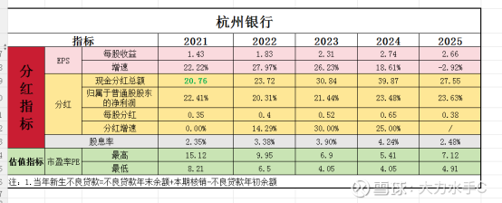 接下来我们看看大家最为关心的杭州银行21-25年的分红指标。