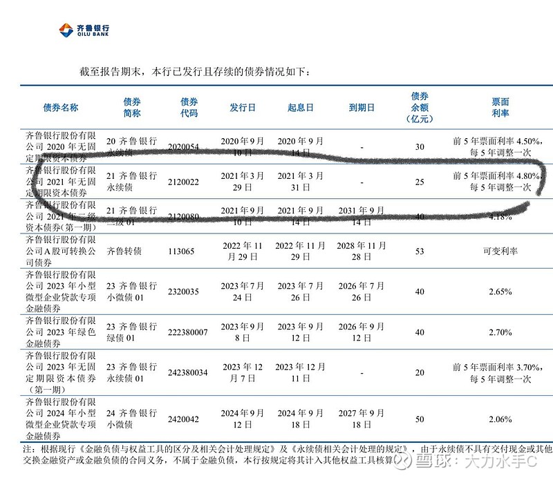 $齐鲁银行(SH601665)$ 齐鲁银行这笔25亿元永续债21年3月发行的,利率4.8%,这笔永续债3月31号就可以赎回了,到时预计4月1号会发公告。这笔永续债赎回后,又可以提升点分红率了。@明生投资之道