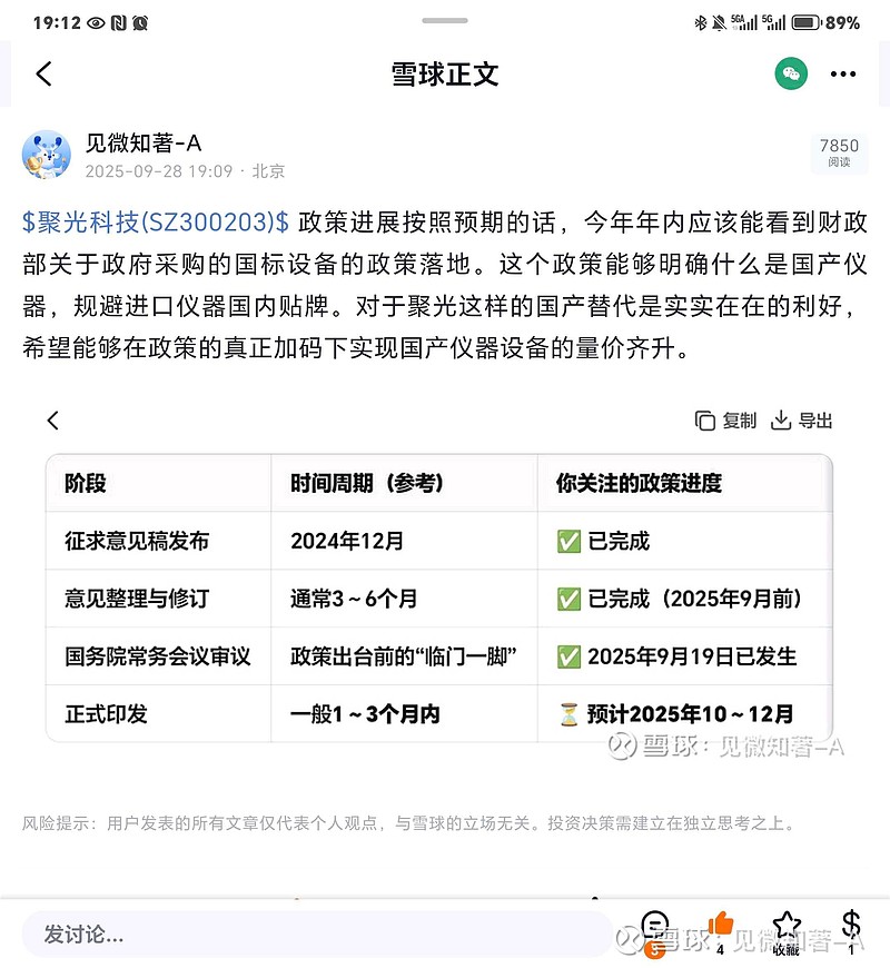 $聚光科技(SZ300203)$两天前思考的政策发布日期,没想到国庆前就发布了。 《关于在政府采购中实施本国产品标准及相关政策的通知》(国办发〔2025〕34号)聚光能不能借着政策东风,一改从四月份26元下跌至17元的颓势,企稳回升,走出主升浪把这几个月创业板涨幅补回来呢。