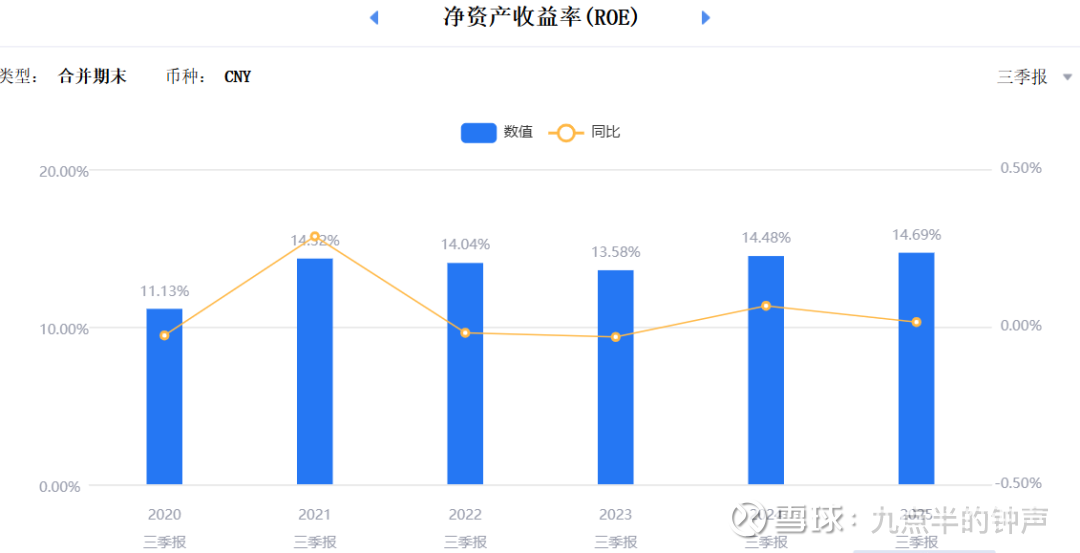 截至2025年三季度末,公司资产负债率为36.54%,较年初的39.30%有所下降,财务结构稳健。加权平均净资产收益率(ROE)为14.69%,同比增加0.21个百分点,增长质量较高。