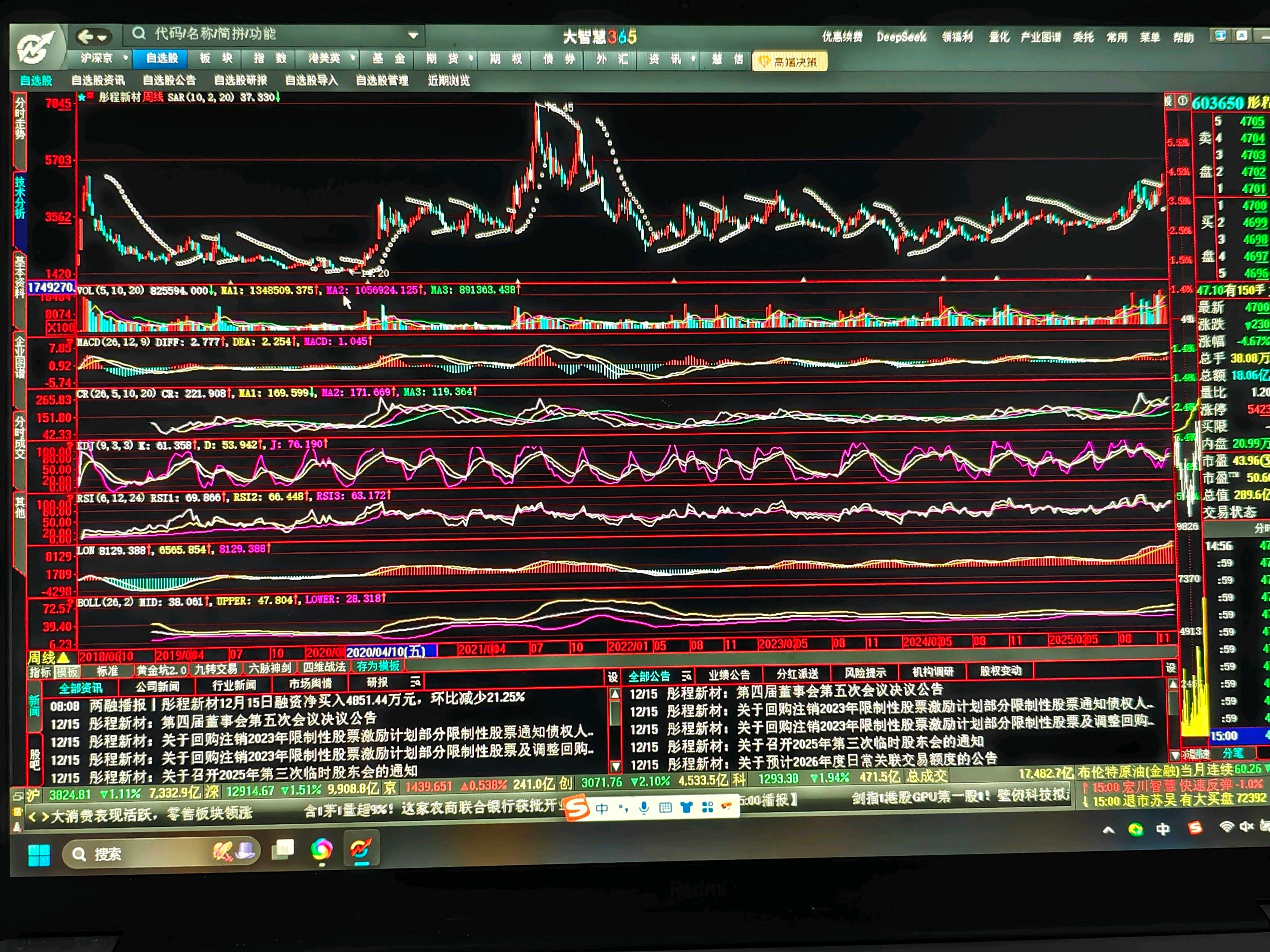 首先,让我们看看彤程新材整个走势。【我照了彤程新材整个大趋势的周线和月线,附在后面,便于浏览】