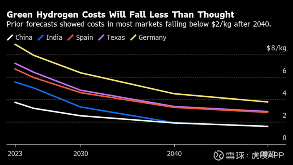 图说:全球绿氢成本走势,比预想中的下降得更慢