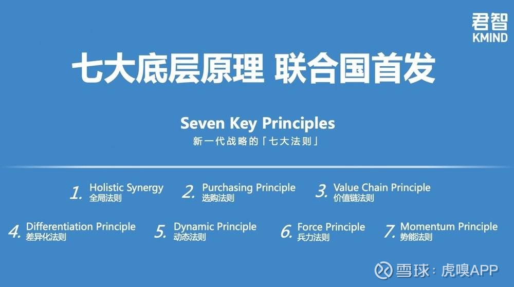 不久前,君智受官方邀请走进联合国总部,成为首个登上联合国的中国战略咨询,并全球首发了君智新一代战略的“七大法则”——全局法则、选购法则、价值链法则、差异化法则、动态法则、兵力法则与势能法则。
