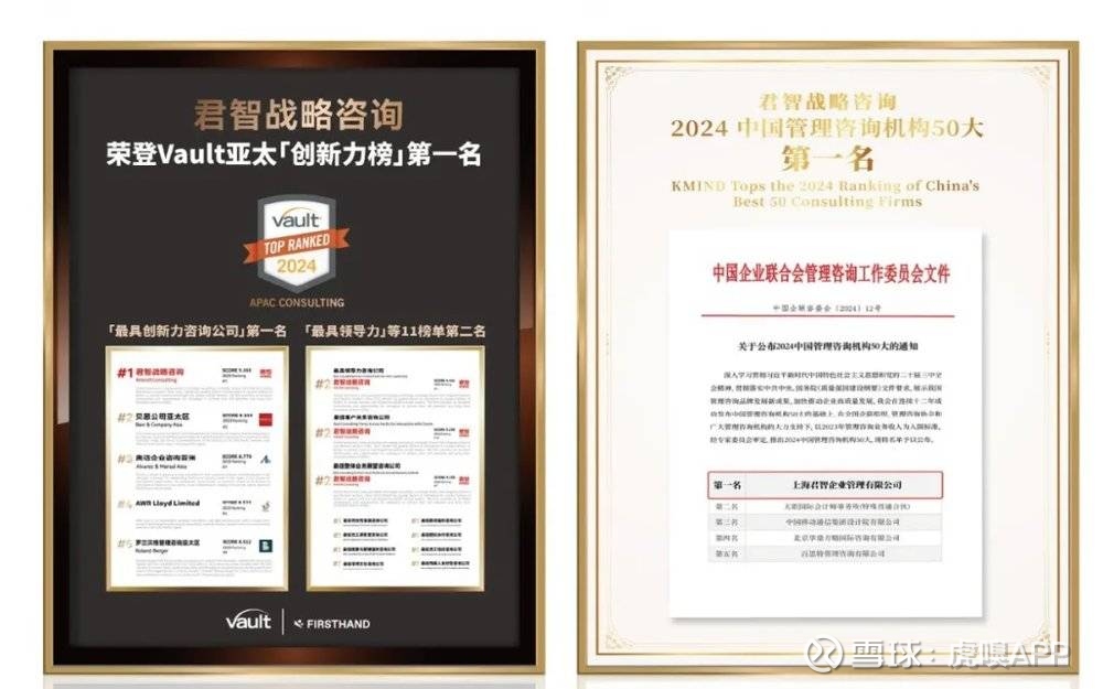 这或许也是其获得国际2024Vault亚太“最具创新力咨询公司”、“2024中国管理咨询机构50强”国内外咨询业界权威榜“双第一”的原因所在。