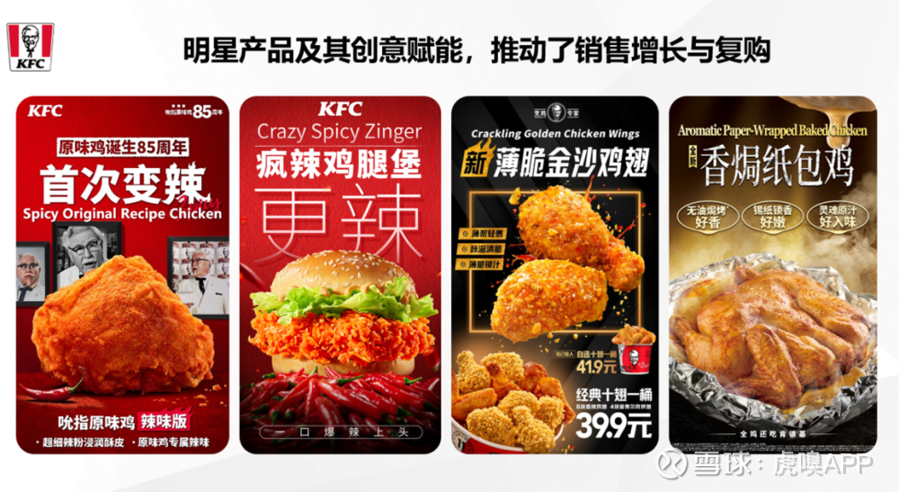 从炸翅、烤翅再到中式翅,从秘汁炸全鸡到香焗纸包鸡,肯德基不仅持续夯实已有品类的优势地位,还不断创造新的爆款品类,聚焦大单品的延伸创新,锁定了消费者的忠诚度,更抬高了品牌的天花板。