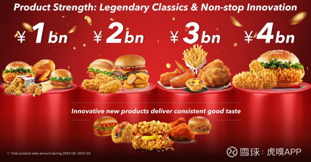 1991年,肯德基推出餐厅手工裹粉、带有黄金鳞片的美式炸鸡香辣鸡翅,12年后,肯德基融汇数十种香料,以高温蒸烤,推出新奥尔良烤翅。这两款当年的新品早已成为肯德基的销售扛把子。根据百胜中国2025年投资者日的相关资料,肯德基新奥尔良烤翅的年度销售额已经超过了30亿,香辣鸡翅更是超过了40亿,充分凸显了大单品的影响力。