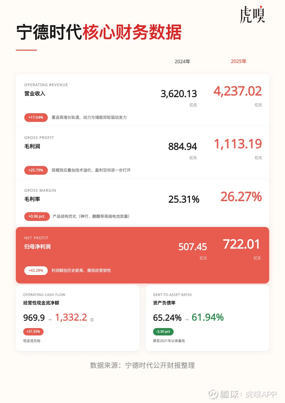 宁德时代公布2025年财报后,市场习惯性地寻找那些跳跃的数字:营收增长多少,利润增加几何,现金流是否充沛。这些数字都很漂亮,但真正值得追问的不是宁德时代赚了多少钱,而是为什么在全行业充满焦虑的2025年,它依然保持从容。