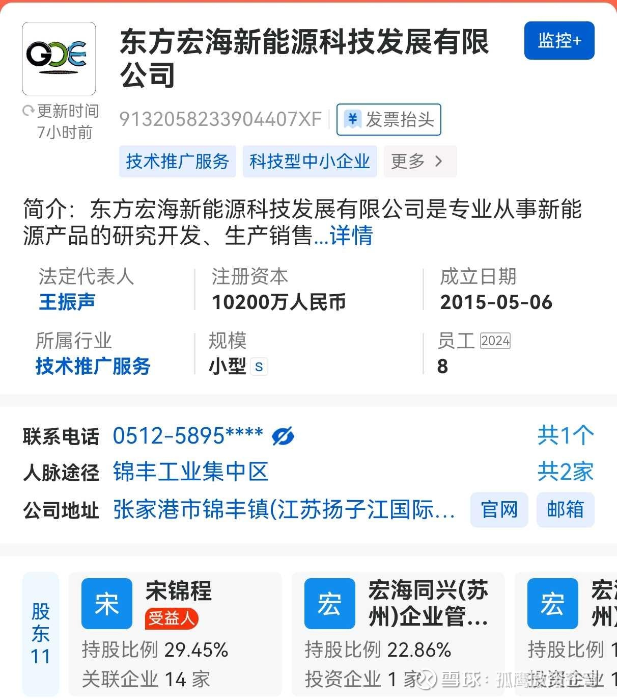 通过天眼查发现,作为上市公司掌舵人,宋家对外投资并不多,主要有两方面:一是由宋正兴主导的老本行PVC弹性地板,二是由宋锦程主导的新能源。经比对投资重心看,宋锦程最看重的是东方宏海新能源科技发展这家公司,公司成立的时候投资了6000多万,占有51%股权,这是宋家投资最重的一家公司。