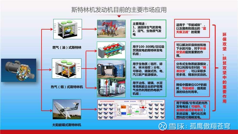 据专业介绍,斯特林发动机是一种外燃发动机,通过气缸内工作介质(氢气或氦气)经过冷却、压缩、吸热、膨胀为一个周期的循环来输出动力,因此又被称为热气机,其有效效率一般介于汽油机与柴油机之间。可利用各种能源(如气态、液态、固态、核等等能源),已在航天器空间动力、新能源汽车、水面舰船和水下潜艇、太阳能光伏发电转换、电网传输降耗等各个领域进行应用,特别是各种潜艇使用的就是斯特林发动机,极大提升了潜艇的作战持续性。据《2024年-2030年中国斯特林发动机战略分析报告》,在“国和一号”国家重点工程推动下,斯特林发动机市场空间进一步拓展,应用领域进一步扩大。未来新能源汽车、飞行汽车、机器人、无人机、工程机械等等领域将会大范围使用斯特林发动机,从而提升能源利用率,提升动力功效。