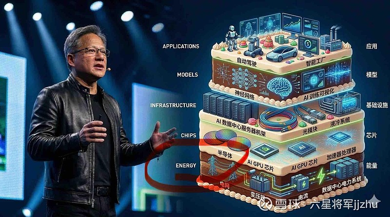 $金风科技(02208)$ $亿华通(02402)$ $金风科技(SZ002202)$ 我认同黄仁勋的“五层蛋糕”理论!黄仁勋曾多次谈及的一个论述,从下往上分别为能源、芯片、基础设施、模型和应用层,每一层相互支撑、相互拉动。