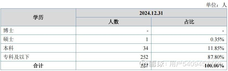 从钜芯科技员工学历来看,专科及以下占比达87.8%,硕士仅1人,占比0.35%,本科仅34人,占比11.85%,公司相当一部分的研发人员要从专科及以下学历的员工里抽取。