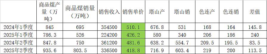 半年报显示,2季度塔山销量603万吨,环比1季度340万吨增长达77%,同比2024年2季度555万吨增长8.6%,2季度晋控煤业降低了售价,大幅增加了销量,填1季度销量的大坑。