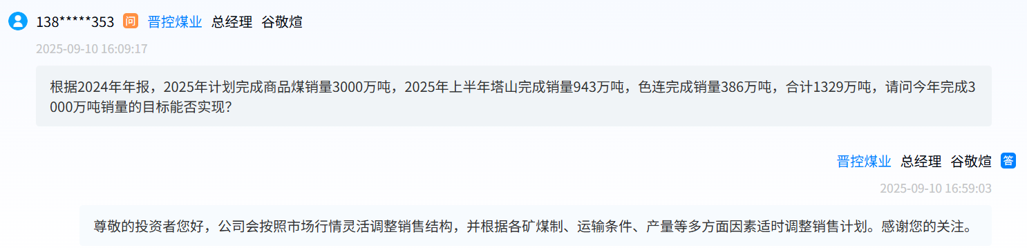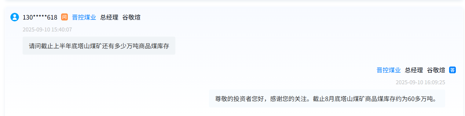 2、2025年1季度晋控投资收益为1.62亿元,而2季度投资收益为-0.48亿元,同忻上半年只有1230万元的净利润,二季度可能是亏钱了,不太正常。如果算上二季度投资收益的差额,二季度的利润实际会超过1季度,虽然色连亏损,但塔山二季度销量增加很多,利润比一季度高一点。