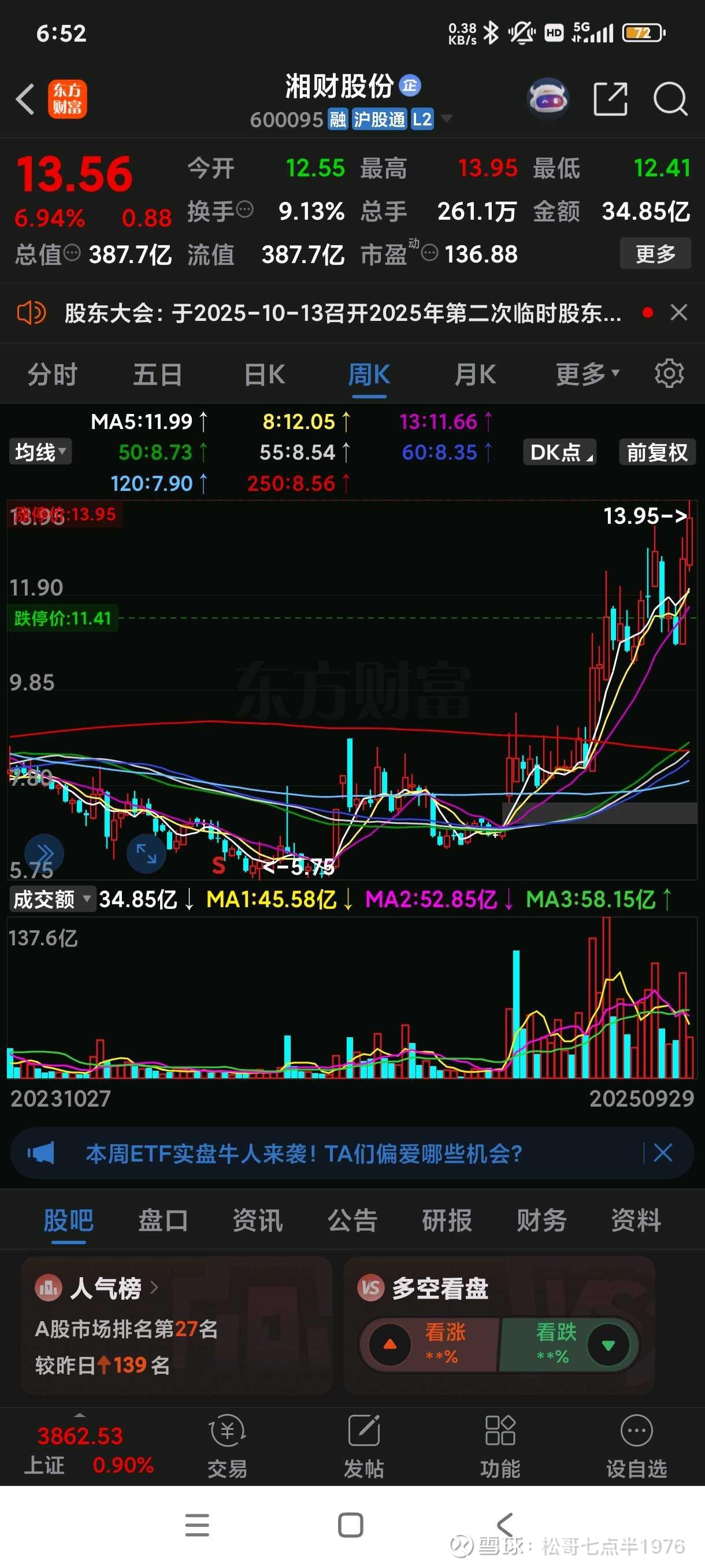 2025年三季度以来,A股成交量持续放大,沪指站稳3500点,券商板块整体走强。湘财股份作为“券商+科技”双概念加持,股价自3月披露并购以来已涨超80%,成为资金追逐的“香饽饽”。