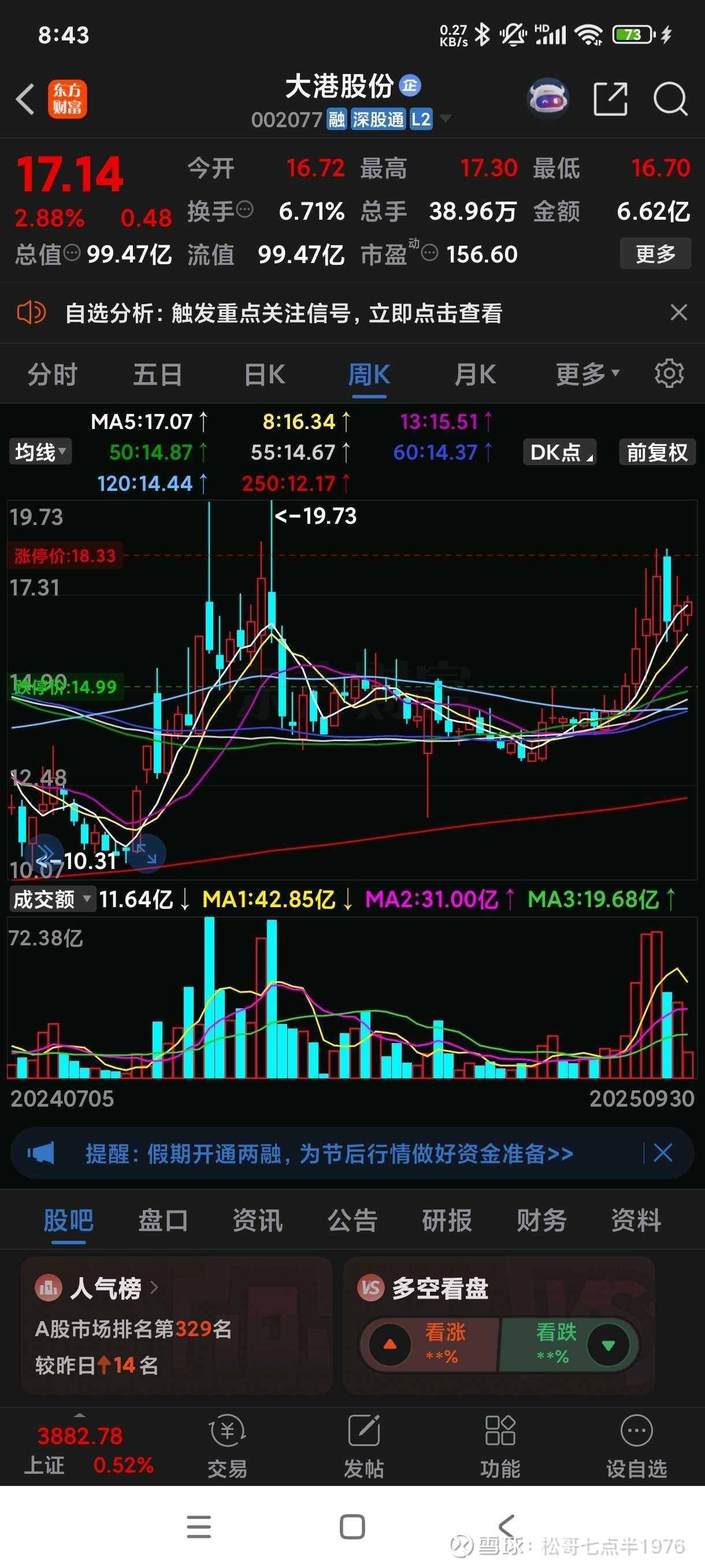 六、彩蛋:如何把大港股份加入“自选火锅”并设置闹钟