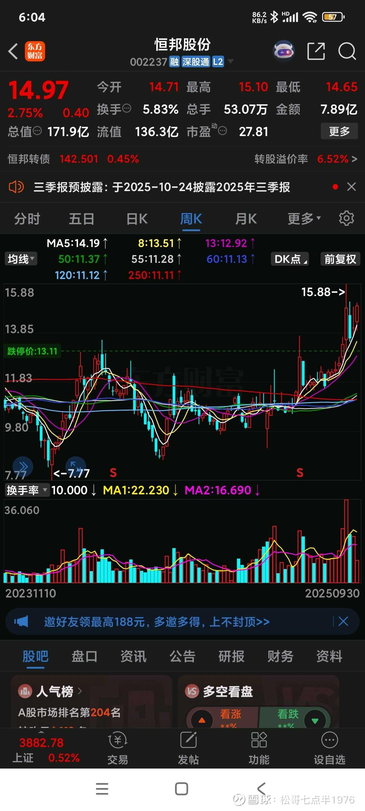 黄金股平均PE(TTM)31倍,恒邦24.8倍,PB 1.46倍,均处于历史30%分位以下。机构测算:若注矿落地,2026年净利有望到15亿元,对应PE直接降到15倍,比山东黄金还便宜一截,估值修复空间肉眼可见。