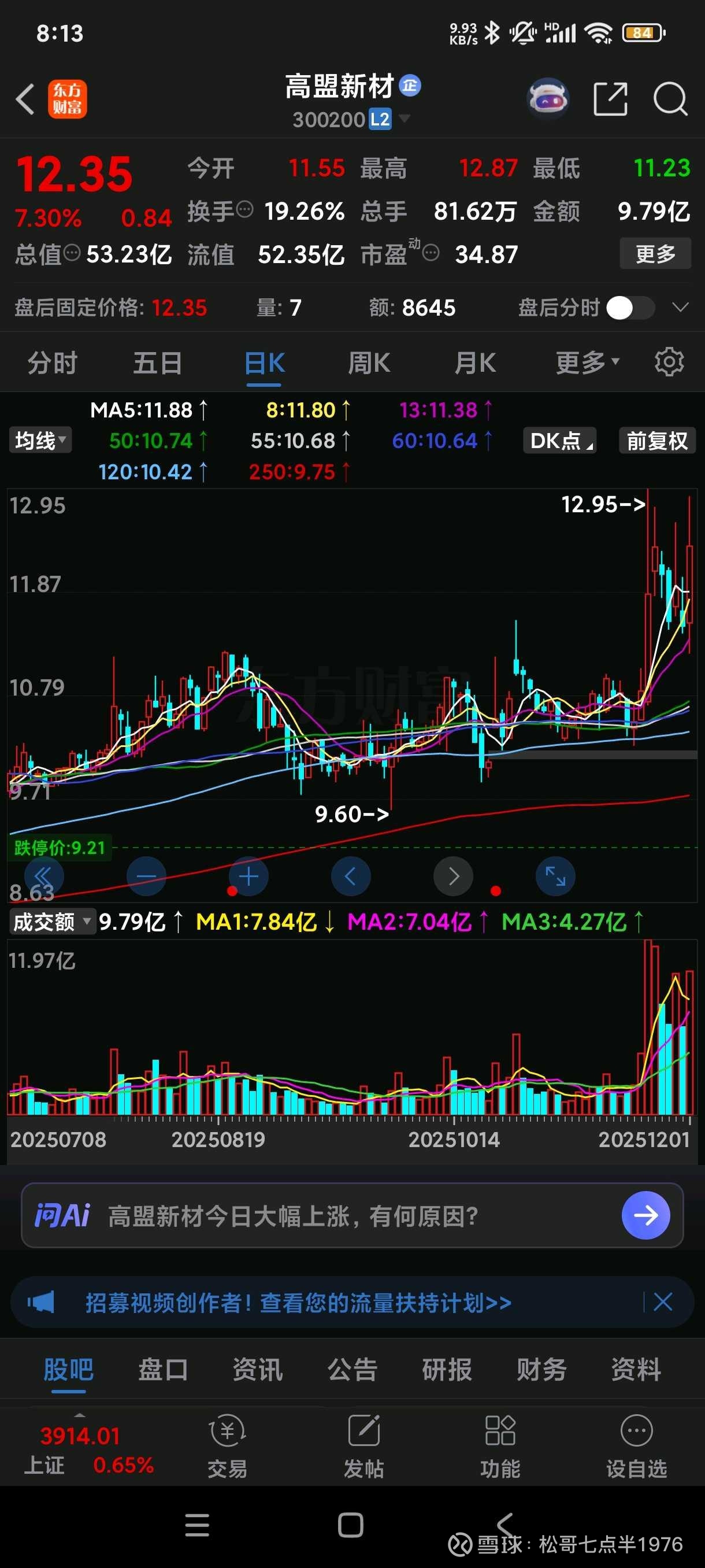7. 估值“高处不胜寒”:按 2025 年预估 1.6 亿净利算,当前市值 70 亿,动态 PE 44 倍,高于新材料板块平均 32 倍。若 2026 年产能释放节奏低于预期,戴维斯双杀随时上演,股吧里“价值旗手”与“技术派”已互扔西红柿。