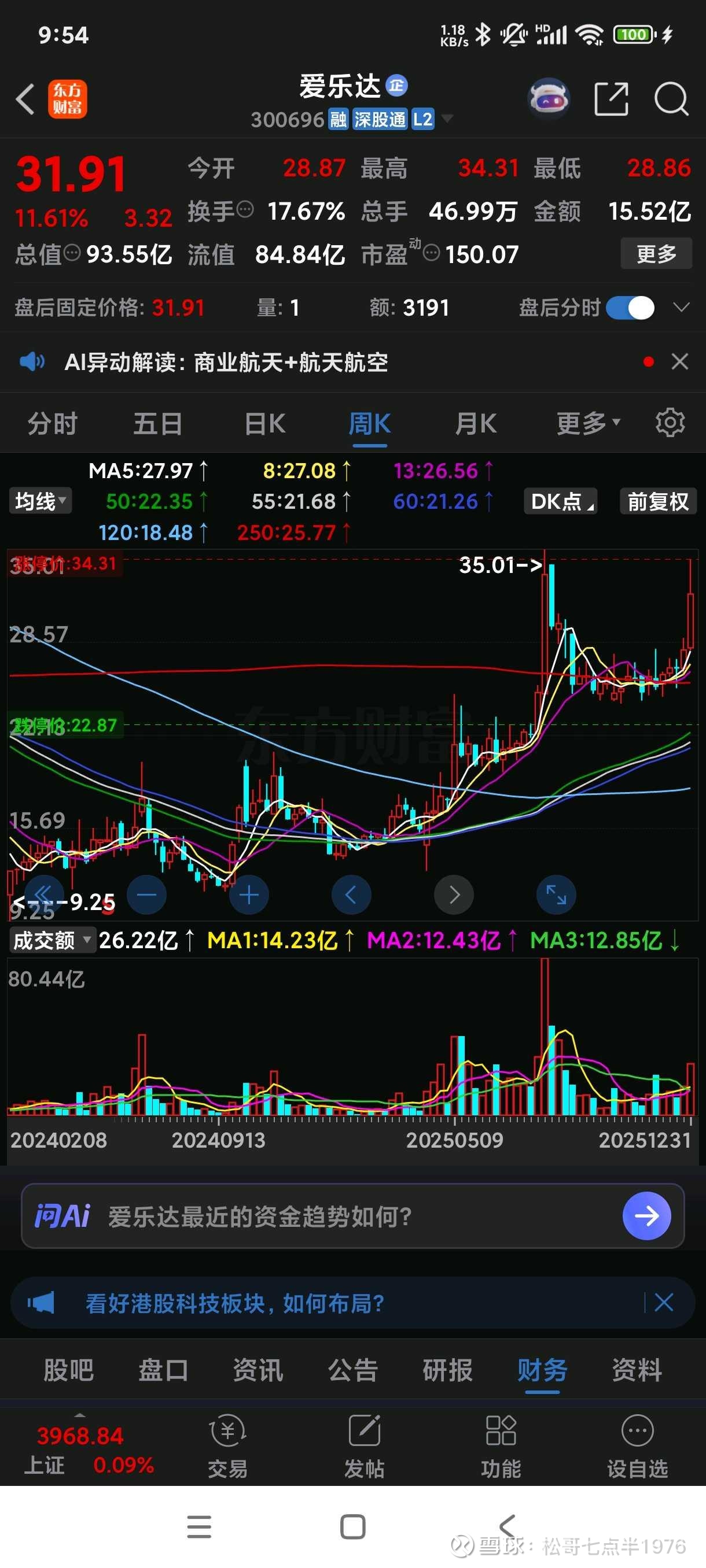 爱乐达这份三季报,像极了一部爽文小说——前一年还在亏损深渊,今年直接“逆天改命”,背后站着C919、商业航天、低空经济三大男主,手里还攥着钛合金、3D打印、高分子材料三大外挂。剧情走到这里,读者(股民)最关心的当然是:下一章会不会烂尾?答案要看应收账款能不能火速变现、火箭客户能否准时发射、以及公司能不能把“成都造”打出国际口碑。若能通关,爱乐达就不是简单的“航空零部件厂”,而是中国版“SpaceX御用铁匠铺”。届时,股价是继续20CM还是回撤整理,就看市场先生给不给掌声了。毕竟,火箭升空前,总要先倒数三声——投资者们,系好安全带,下一发点火倒计时开始。