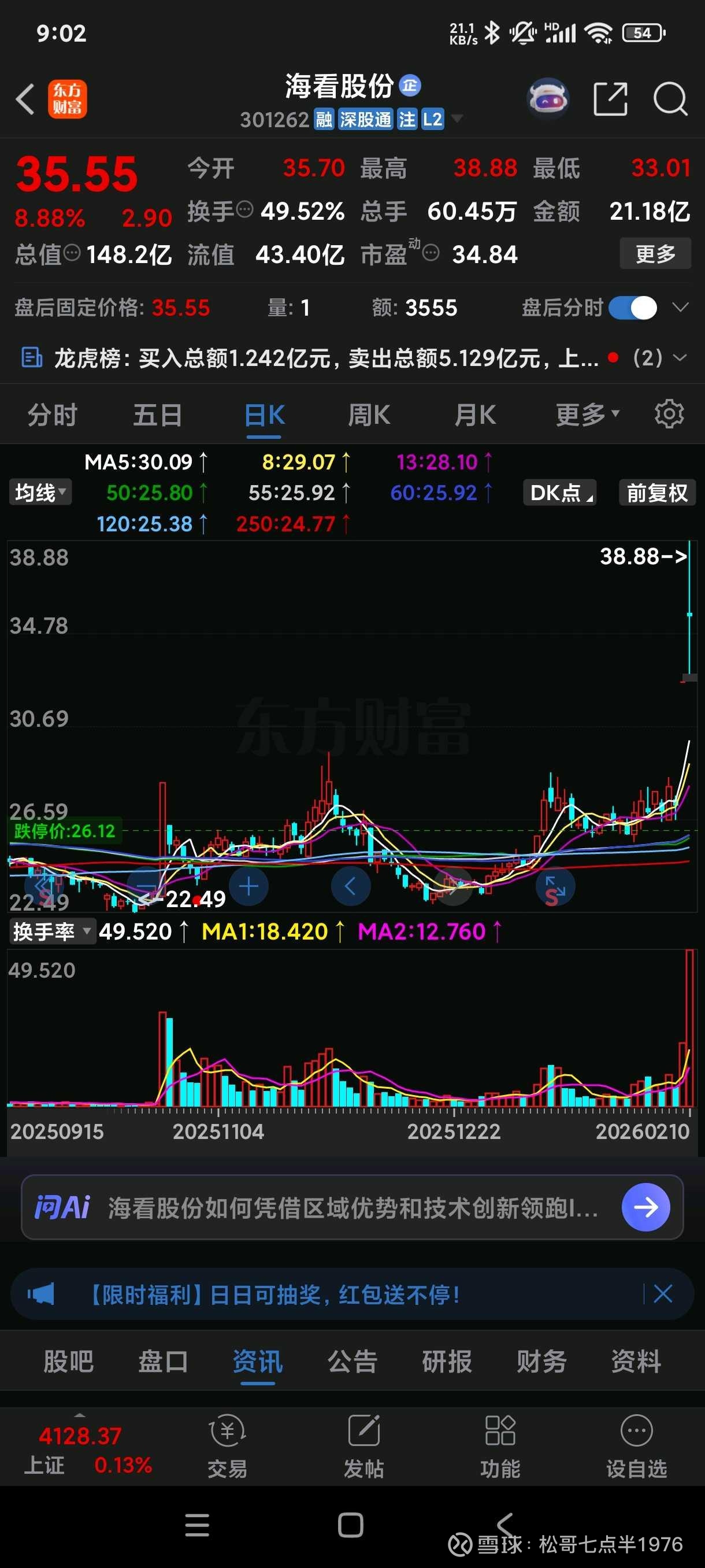 如果你是一位追求稳定收益、厌恶高波动的投资者,海看的高股息+低估值特性非常适合你。如果你是一位看好AI应用、传媒转型、字节生态的投资者,海看的即梦AI概念+微短剧布局也给了你足够的想象空间。