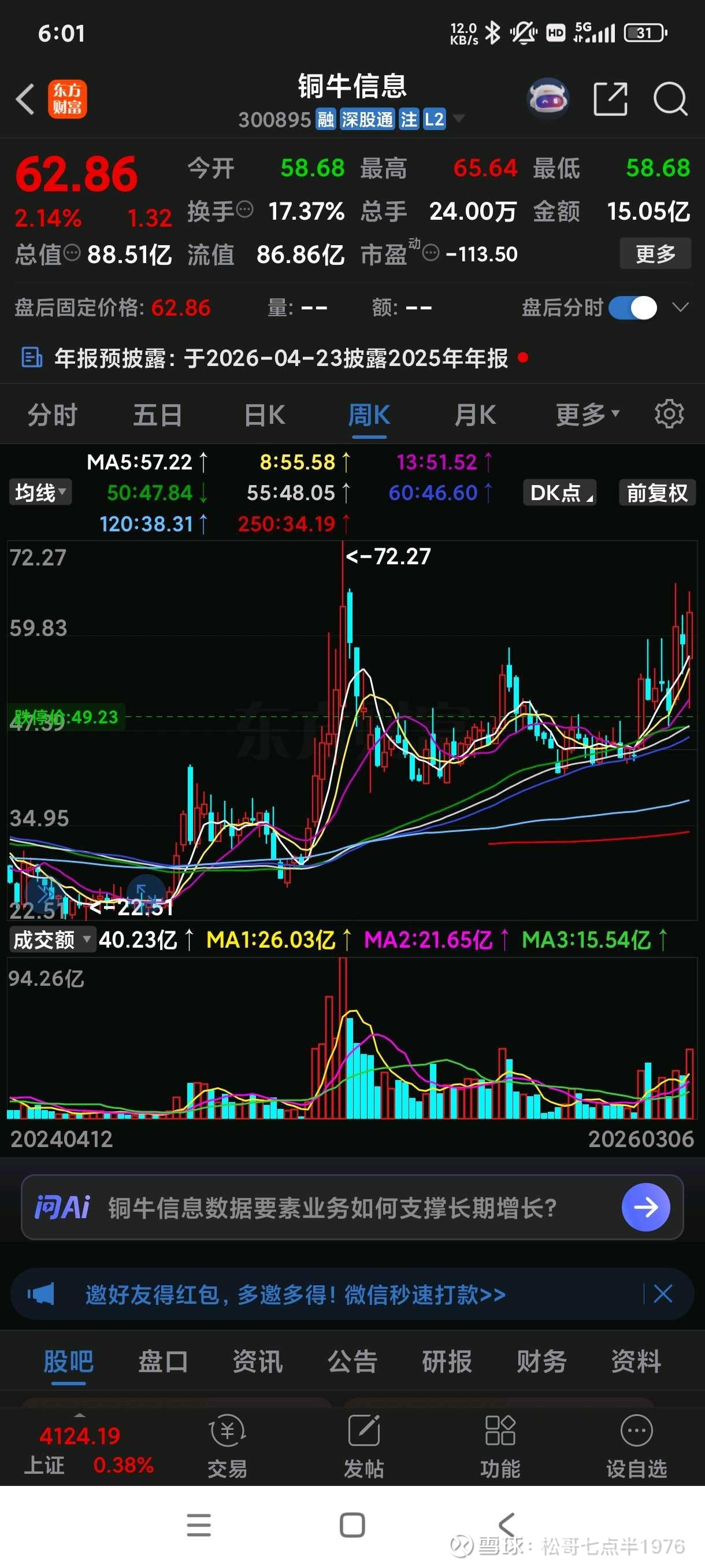 2026年3月5日,铜牛信息股价20CM涨停,收盘价61.54元,总市值冲到86.30亿元。这一天,它成了A股市场上最靓的仔之一。那么,这背后到底有什么故事?2026年还值得追吗?咱们慢慢聊。