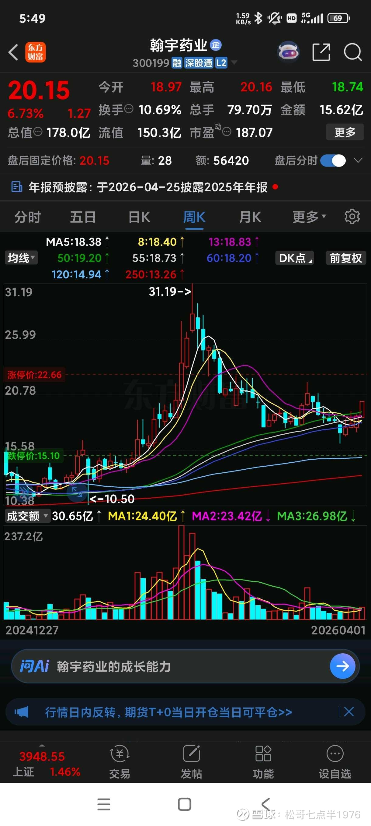 各位投资者朋友们好!今天咱们来聊一只在医药圈里"闷声发大财"的标的——翰宇药业。这家公司在2026年可谓是站在了风口上,而且不是那种"猪都能飞"的盲目风口,而是有着扎实基本面支撑的"硬核风口"。接下来,且听我慢慢道来,为什么这家曾经连续三年亏损的公司,正在上演一出精彩的"逆袭大戏"。